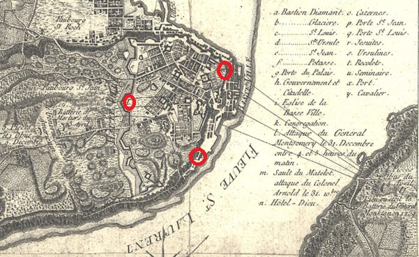 But that guidance never came. Congress’s “Committee to the Northern Army” never came north of Fort Ticonderoga. General Montgomery wrote that he was “mortified” at this, but he barely spent any time on politics himself either. To his credit, he had military matters on his mind. He set up a military regime to keep Montreal secure, and quickly moved downriver to attack the last outpost of the British Army in Canada, where Governor Carlton had already fled: Quebec City.